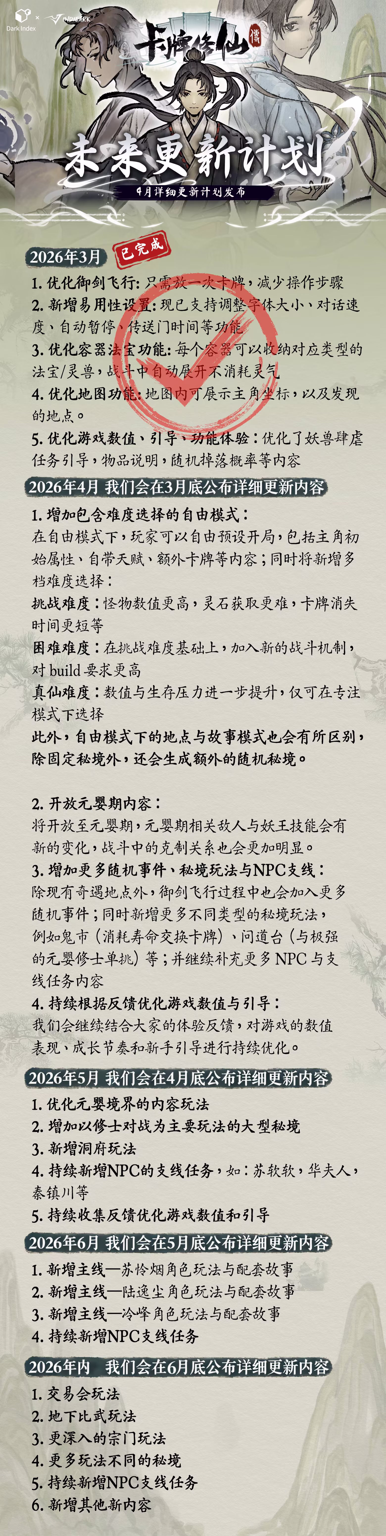 这条修仙之路并非只有一个人,你可以运用你的神识搜寻探索地图内各种隐藏地点。与来自不同门派的修士切磋交流、与商人交易、探索村庄和遗迹,也许你能发现特别的机遇!